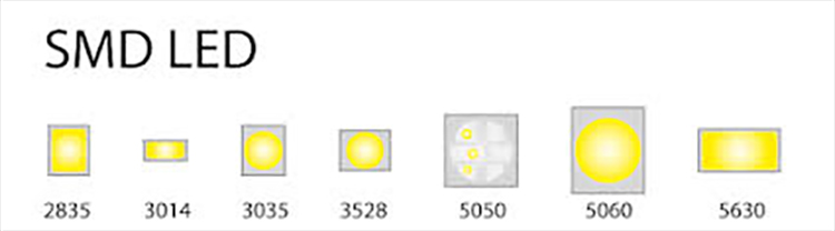 Chip LED SMD có thể được tạo ra với nhiều thiết kế khác nhau. Kích thước phổ biến nhất là SMD 3528 (chip rộng 3,5mm) và chip SMD 5050 (chip rộng 5mm). Chip SMD được sản xuất sử dụng các lớp nano sapphire và chất dẻo gallium được cắt và liên kết với tấm nền ceramic.